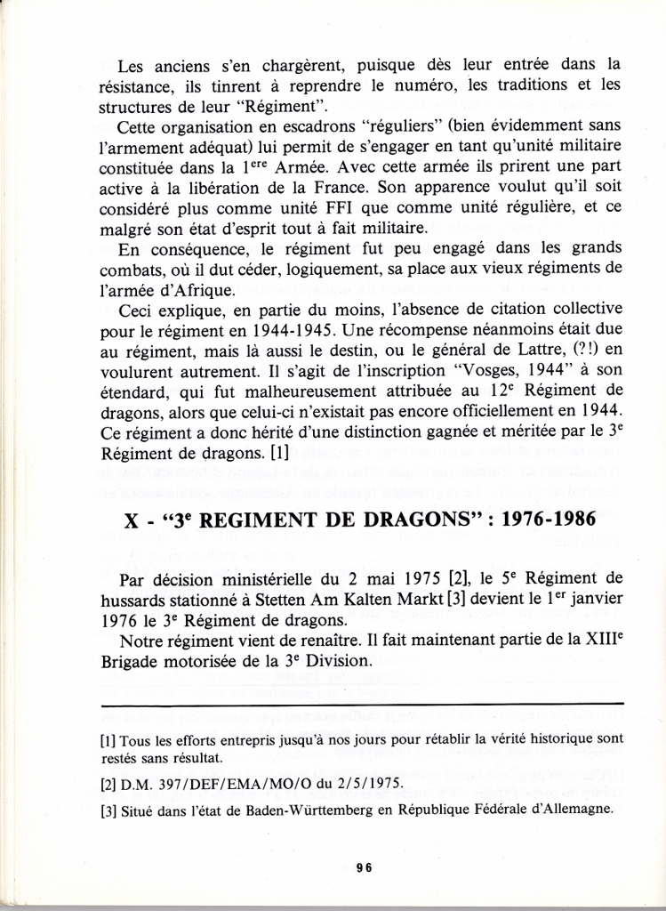 Il fut rédigé à l’occasion de la journée Portes Ouvertes des 13 et 14 septembre 1986, du 10e anniversaire de la présence du Régiment à STETTEN et du tricentenaire de la création de Bourbon-Cavalerie.