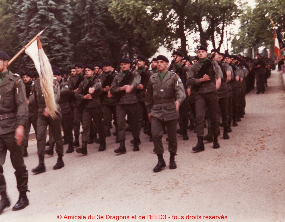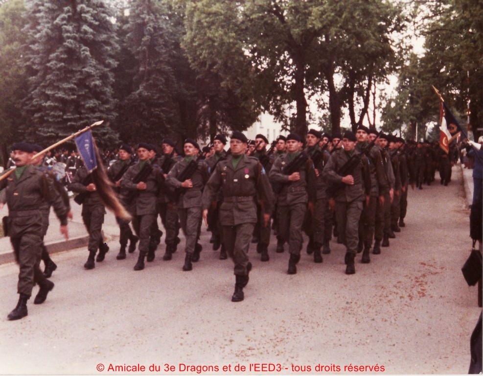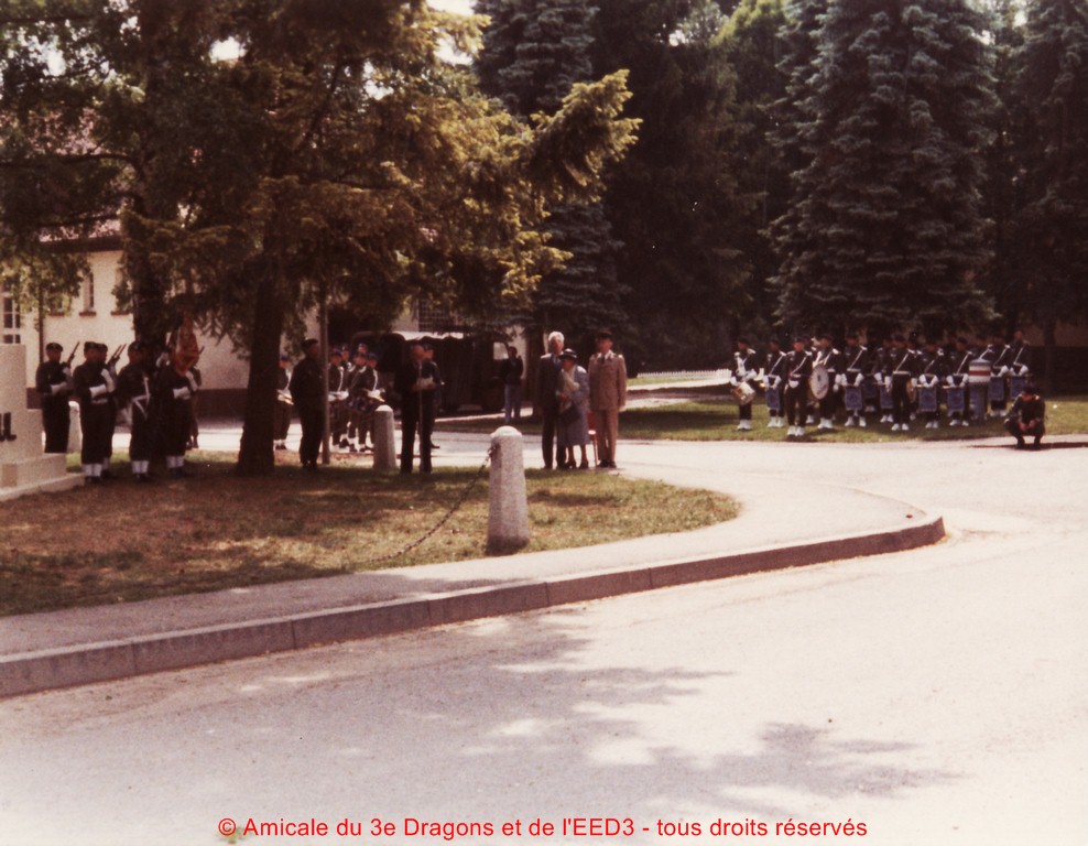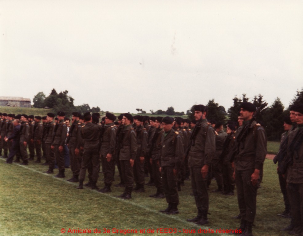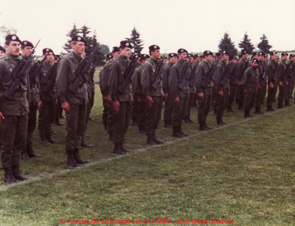 - prise d’armes avec remise de la fourragère par les anciens aux jeunes dragons du contingent 1983/06. Le Lieutenant Colonel VERGE présente les troupes et prend le commandement du Régiment.