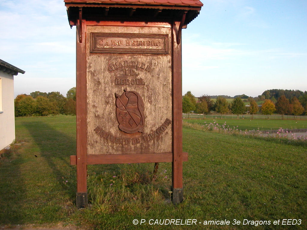 - Panneau concernant le 3ème RD : Il fut installé par la ville, au temps du Régiment, à proximité de la mairie. Avec le temps, menaçant ruine, il a été démonté, retapé comme faire se peut et installé dans le camp à l’entrée du musée militaire, juste en face des anciens ateliers de réparations (format JPEG - 172.4 ko)