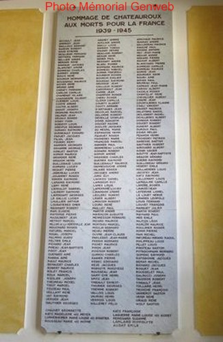 Son nom figure sur une plaque commémorative située dans l’ancienne mairie de Châteauroux (36), devenue conservatoire de musique.