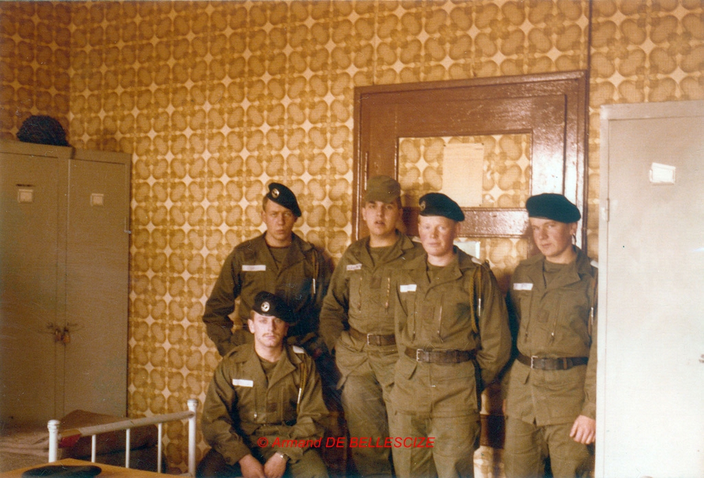 - 1979-1 Chambre 2e peloton 4e escadron - Debout de gauche à droite : Dupont, Guillemier, Berthelot, Pretre - Assis : Vermelle (format JPEG - 606.3 ko)