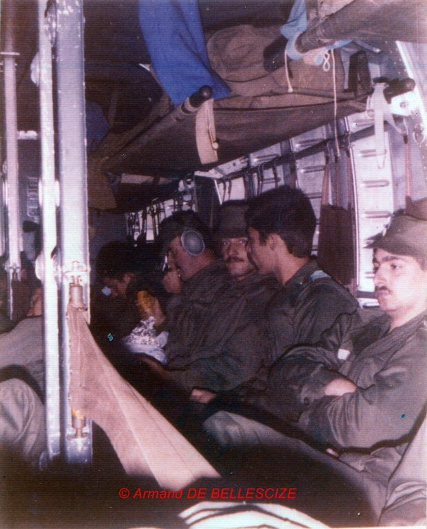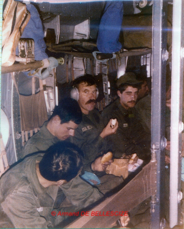 - 1979-6 Déplacement en Nord Atlas de Stuttgart à Hyères pour manœuvre à Canjuers - De gauche à droite : Chef Joubert, MDL Lardy, Adj Blanchard, MDL de Bellescize (format JPEG - 444.5 ko)