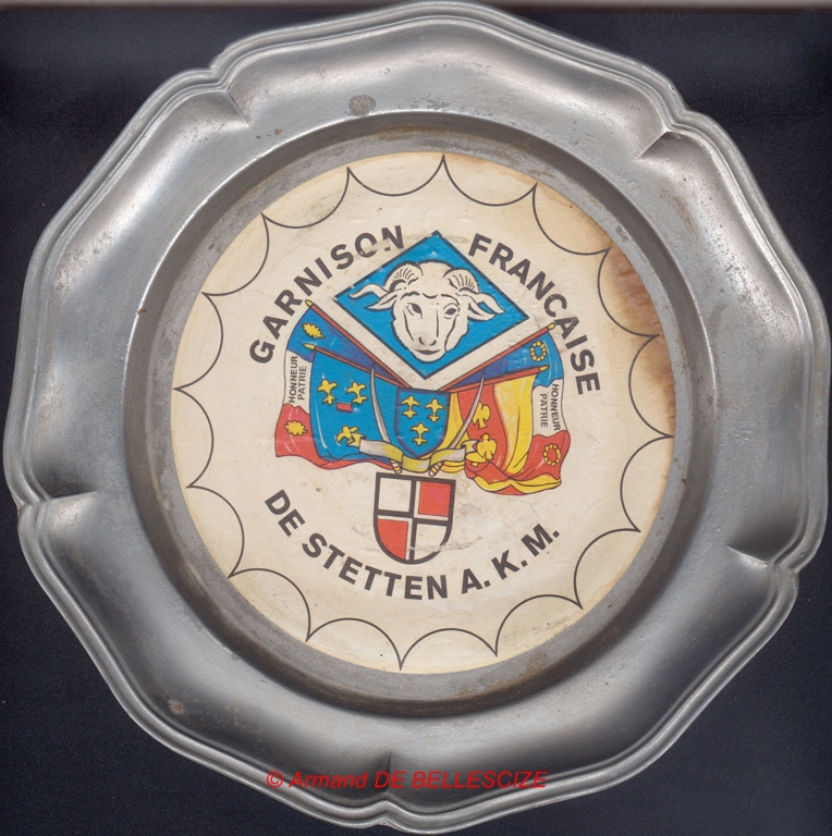 - 1981-02 Volksmarsh organisée au 3ème RD - Assiette gagnée lors d’une volksmarsch organisée au 3ème RD. Etain avec autocollant 3RD (format JPEG - 439.5 ko)