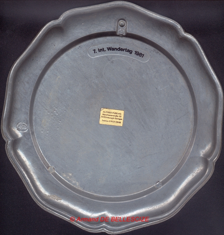 - 1981-01 Volksmarsh organisée au 3ème RD - Assiette gagnée lors d’une volksmarsch organisée au 3ème RD. Etain avec autocollant 3RD (format JPEG - 507.5 ko)